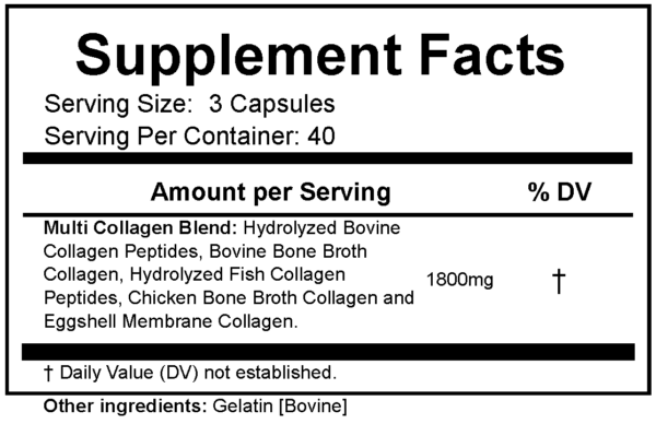 Multi Collagen Blend: Hydrolyzed Bovine Collagen Peptides, Bovine Bone Broth Collagen, Hydrolyzed Fish Collagen Peptides, Chicken Bone Broth Collagen and Eggshell Membrane Collagen - 1800mg -