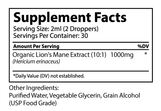This formula contains 1000 mg of organic Hericium erinaceus extract per serving (10:1 concentrated ratio).