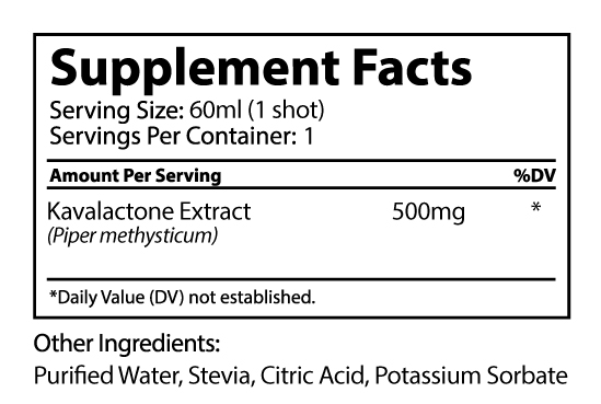 This formula contains 500 mg of Kavalactone Extract (Piper methysticum) per serving.