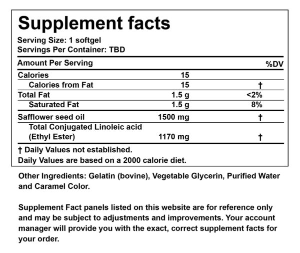 This formula contains 1500 mg of safflower seed oil, which provides 1170 mg of high-quality conjugated linoleic acid (CLA).